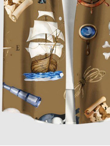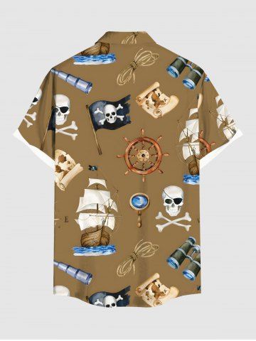 Chemise grande taille à imprimé tête de mort, pirate, gouvernail, voilier, télescope, croisière hawaïenne, boutonnée, poche, pour homme - Café - Café