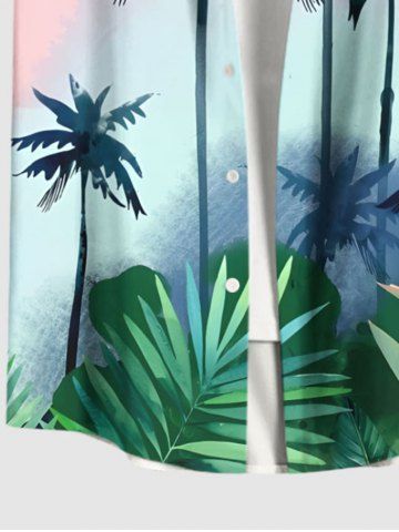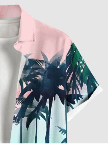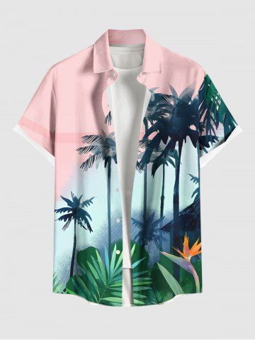 Chemise Grande Taille Boutonnée Imprimé Feuille Tropicale et Cocotier - Rose Clair - Rose Léger