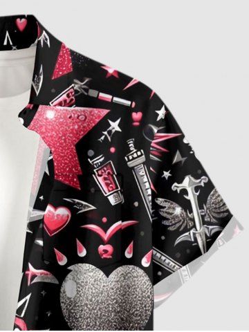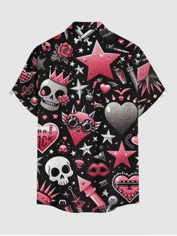 Chemise à Manches Courts> Chemise grande taille homme à imprimé tête de mort, couronne de roses et cœur, poche boutonnée