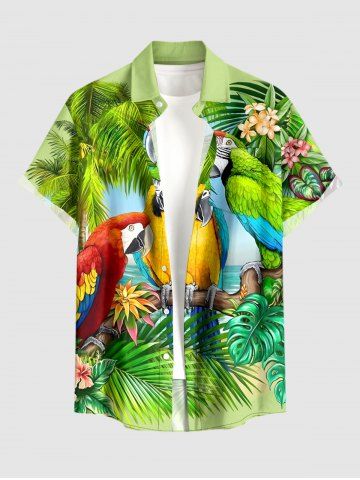 Chemise grande taille homme à imprimé tropical cocotier et perroquet, style hawaïen, avec boutons et poche. - Vert - Vert