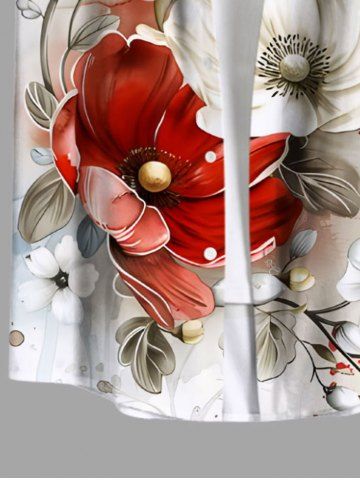 Chemise Grande Taille Imprimé à Fleur et Feuille Tropicale avec Poche Frontale - Rouge - Rouge