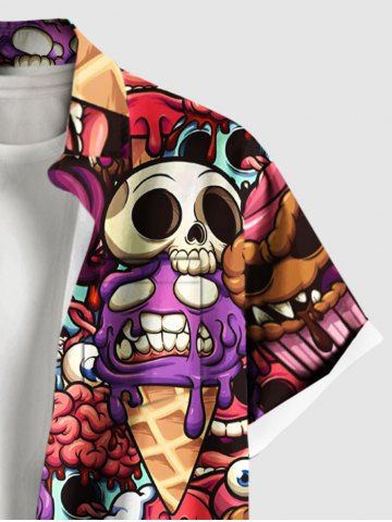 Chemise à Manches Courts> Chemise Grande Taille Imprimé Cerveau dans le Glace avec Poche et Inscription Brain L'Eau pour Homme