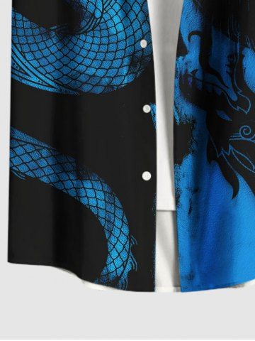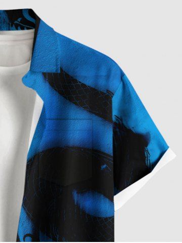 Chemise Grande Taille Imprimé Dragon à Peinture à Deux Tons avec Poche pour Homme - Bleu - Bleu