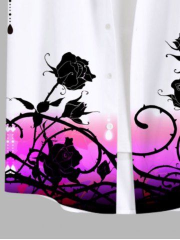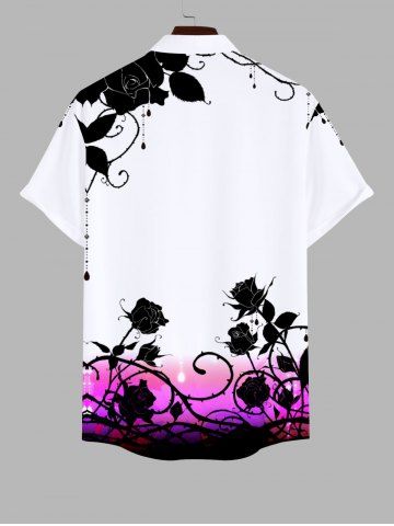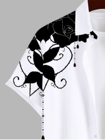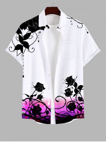 Chemise Grande Taille Imprimé Rose et Feuille Classique à Boutons avec Poche pour Homme - Blanc - Blanc