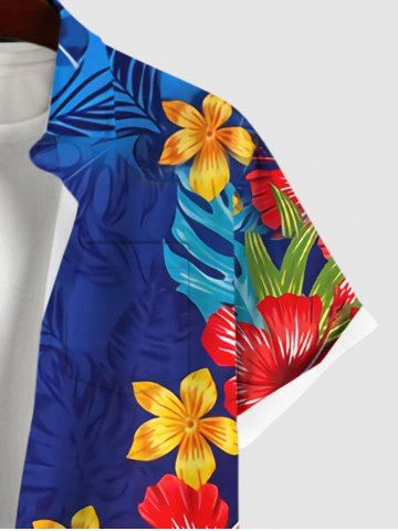 Chemise à Manches Courts > Chemise Grande Taille Imprimée Florale Tropicale à Boutons à Poche pour Homme