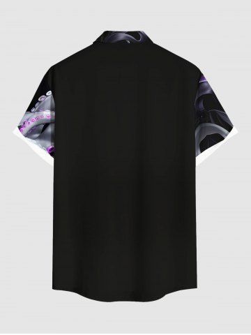Chemise Grande Taille Imprimée Poulpe Tropicale à Boutons à Poche pour Homme - Noir - Noir