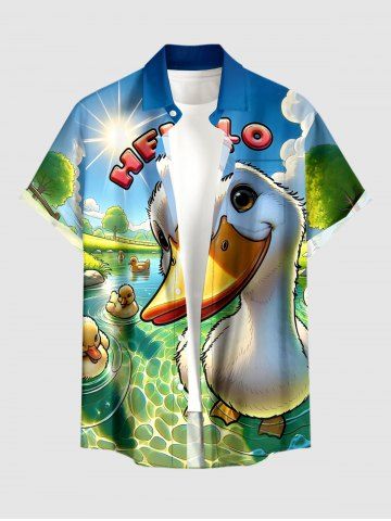 Chemise à Manches Courts> Chemise grande taille pour homme, imprimé soleil et canards mignons, avec boutons et poche, style hawaïen.