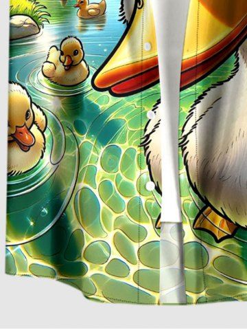 Chemise à Manches Courts> Chemise grande taille pour homme, imprimé soleil et canards mignons, avec boutons et poche, style hawaïen.