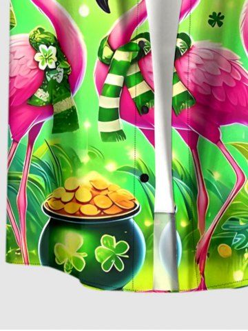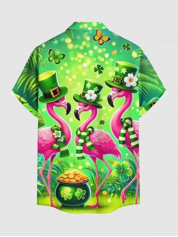 Chemise grande taille pour homme, motif flamant rose, papillon, fleurs et clous de girofle, avec poches et boutons, idéale pour la Saint-Patrick. - Vert - Vert