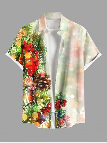 Chemise à Manches Courts > Chemise grande taille pour homme, motif pomme de pin et feuilles, imprimé dégradé, poches boutonnées, idéale pour les fêtes du Nouvel An.