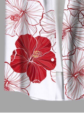 Chemise hawaïenne à boutons et poches, grande taille, à imprimé floral d'hibiscus texturé, pour homme - Blanc - Blanc