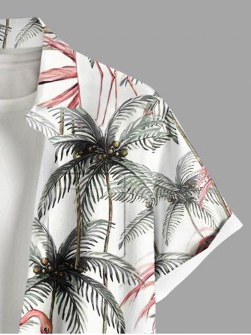 Chemise hawaïenne à boutons et poches, imprimé flamants roses et cocotiers, grandes tailles pour hommes - Blanc - Blanc