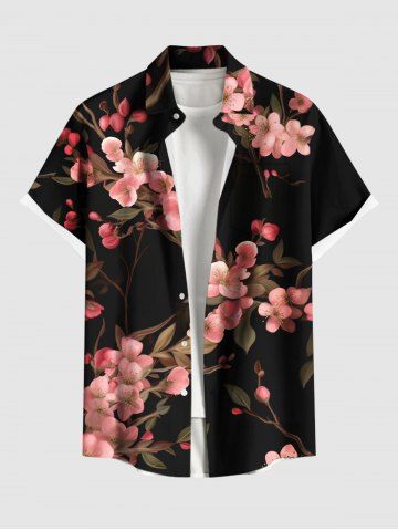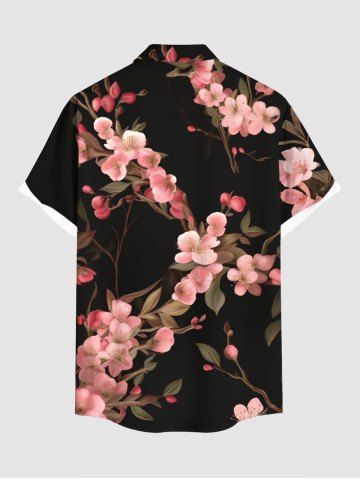 Chemise hawaïenne grande taille à imprimé floral ombré et poches boutonnées pour homme - Noir - Noir