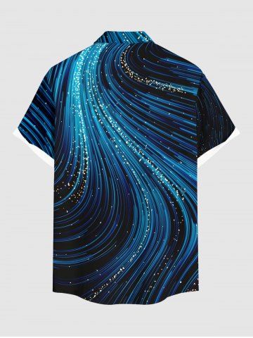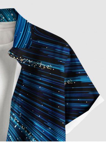 Chemise à Manches Courts> Chemise hawaïenne à boutons et poches pour homme, grande taille, imprimé faisceau lumineux pailleté