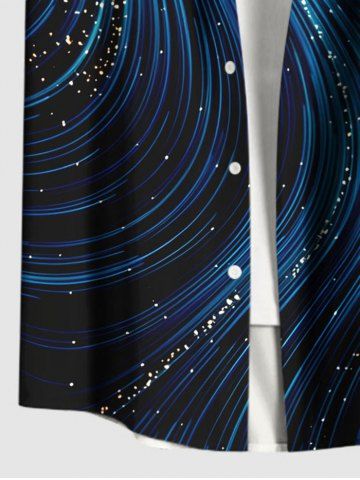 Chemise hawaïenne à boutons et poches pour homme, grande taille, imprimé faisceau lumineux pailleté - Bleu Marine - Bleu Marin