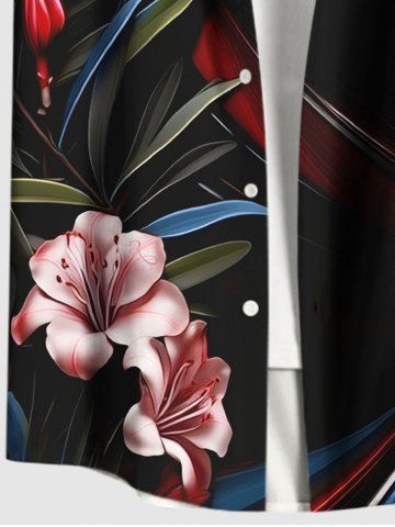 Chemise hawaïenne grande taille à imprimé floral et feuilles, coupe ombrée, avec poches et boutons, pour homme - Noir - Noir