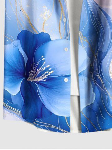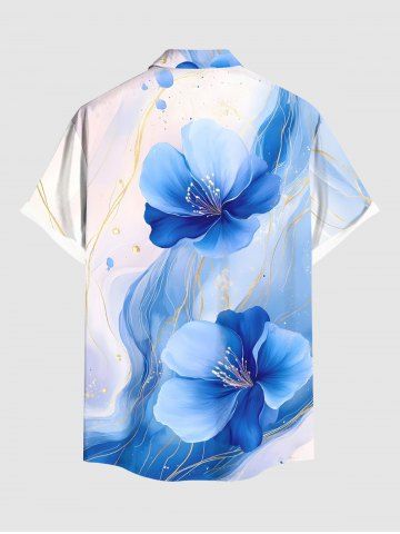 Chemise hawaïenne à boutons et poches pour homme, grande taille, imprimé floral ombré aquarelle - Bleu - Bleu