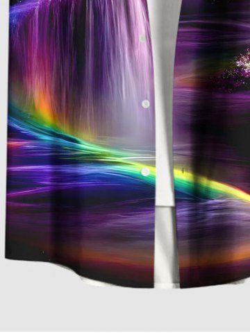 Chemise à Manches Courts> Chemise hawaïenne à boutons et poches pour homme, grande taille, motif ombré pailleté et effet faisceau lumineux automnal