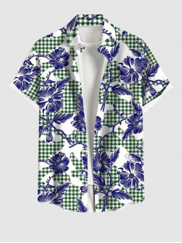 Chemise à Manches Courts> Chemise hawaïenne à carreaux et imprimé floral grande taille pour homme
