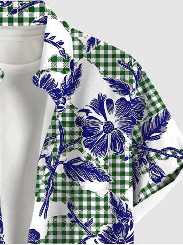 Chemise à Manches Courts> Chemise hawaïenne à carreaux et imprimé floral grande taille pour homme