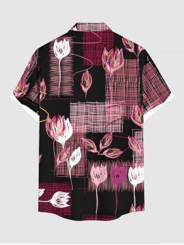 Chemise hawaïenne à carreaux tressés et imprimé floral, grande taille, avec poches et boutons, pour homme - Noir - Noir
