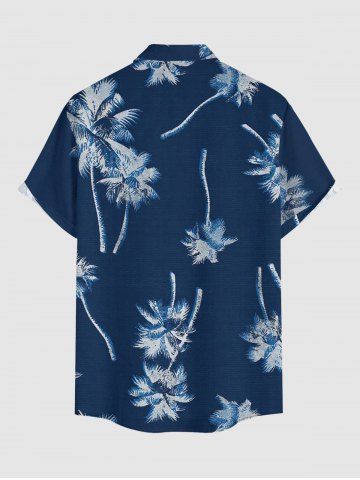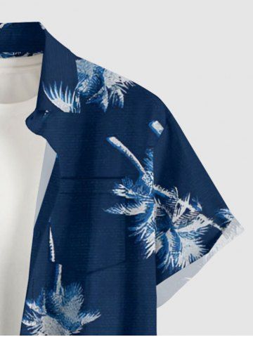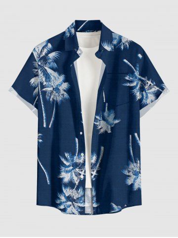 Chemise hawaïenne à imprimé cocotier et poches boutonnées grande taille pour homme - Bleu Profond - S