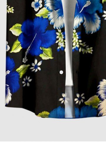 Chemise hawaïenne à imprimé de fleurs d'hibiscus et de feuilles, grande taille, avec poche boutonnée, pour homme - Noir - Noir