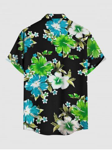Chemise hawaïenne à imprimé de fleurs d'hibiscus et de feuilles, grande taille, avec poche boutonnée, pour homme - Noir - Noir