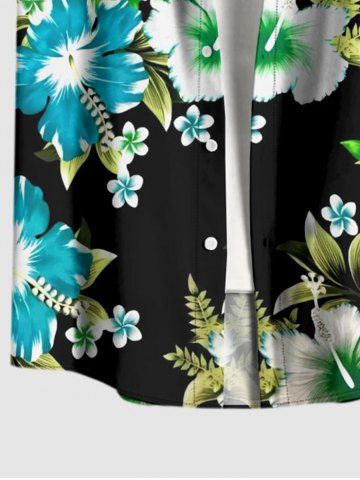 Chemise hawaïenne à imprimé de fleurs d'hibiscus et de feuilles, grande taille, avec poche boutonnée, pour homme - Noir - Noir