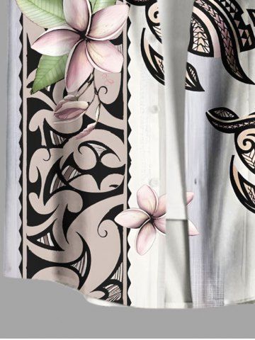 Chemise hawaïenne à imprimé ethnique tortue et fleurs, grande taille, avec poche boutonnée, pour homme - Blanc - Blanc