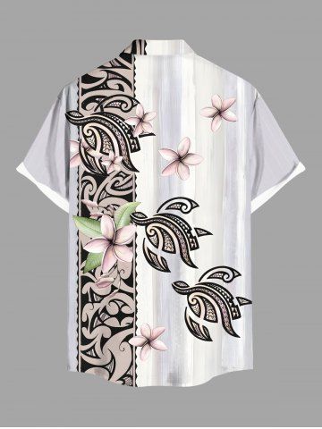 Chemise hawaïenne à imprimé ethnique tortue et fleurs, grande taille, avec poche boutonnée, pour homme - Blanc - Blanc