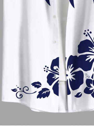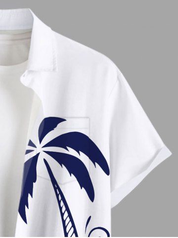 Chemise hawaïenne grande taille à imprimé bicolore cocotier et fleurs d'hibiscus pour homme - Blanc - Blanc