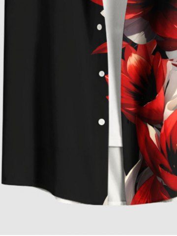 Chemise hawaïenne à boutons et poches, imprimé floral bicolore, grande taille, pour homme - Noir - Noir