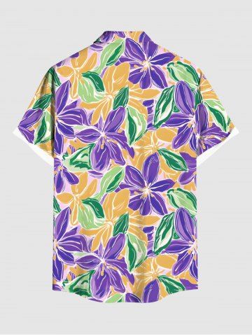 Chemise hawaïenne à imprimé floral d'hibiscus coloré grande taille avec poche boutonnée pour homme - Jaune - Jaune