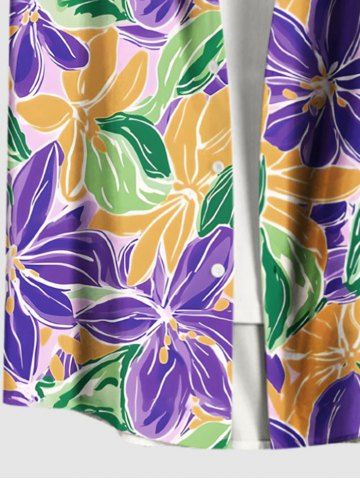 Chemise à Manches Courts> Chemise hawaïenne à imprimé floral d'hibiscus coloré grande taille avec poche boutonnée pour homme
