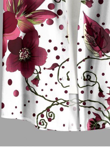 Chemise hawaïenne à imprimé floral et à pois, grande taille, avec poche boutonnée, pour homme - Blanc - Blanc