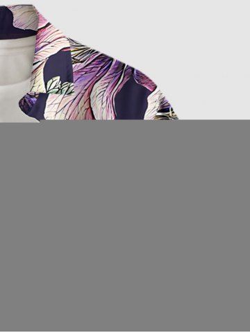 Chemise à Manches Courts> Chemise hawaïenne à imprimé floral et feuilles grande taille avec poche boutonnée pour homme