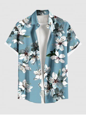 Chemise à Manches Courts> Chemise hawaïenne à imprimé floral et feuilles grande taille avec poche boutonnée pour homme