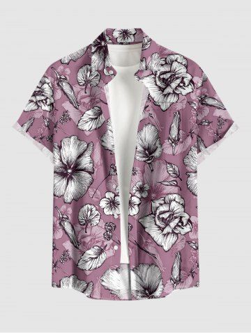 Chemise hawaïenne à imprimé floral et feuilles grande taille avec poche boutonnée pour homme - Violet Clair - Violet Clair