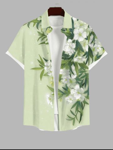 Chemise hawaïenne à imprimé floral et feuilles grande taille avec poche boutonnée pour homme - Vert Clair - Vert Clair