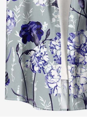 Chemise hawaïenne à imprimé floral et poches boutonnées grande taille pour hommes - Bleu Marine - Bleu Marin