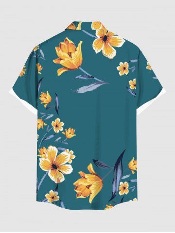 Chemise hawaïenne à imprimé floral, feuilles et branches, grande taille, avec poche boutonnée, pour hommes - Vert - Vert