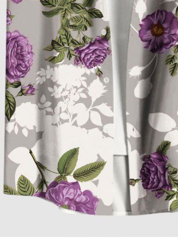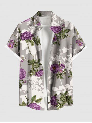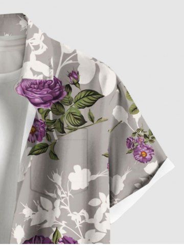 Chemise hawaïenne à imprimé floral, feuilles et branches, grande taille, avec poche boutonnée, pour hommes - Gris Foncé - Gris Foncé