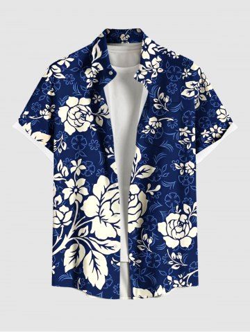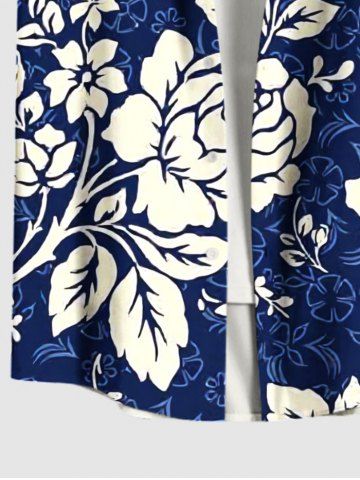 Chemise à Manches Courts > Chemise hawaïenne à imprimé floral, feuilles et branches, grande taille, avec poche boutonnée, pour hommes