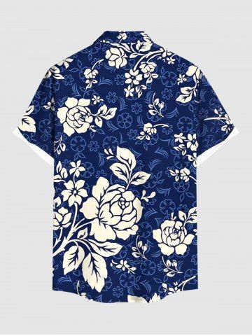 Chemise à Manches Courts> Chemise hawaïenne à imprimé floral, feuilles et branches, grande taille, avec poche boutonnée, pour hommes