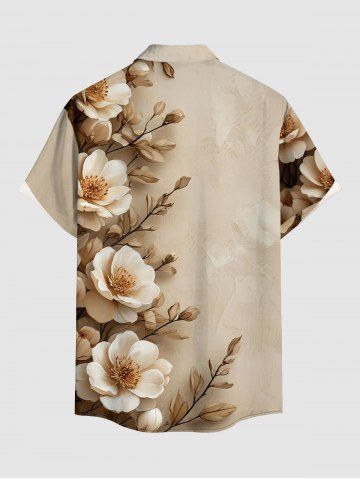 Chemise hawaïenne à imprimé floral, feuilles et branches, grande taille, avec poche boutonnée, pour hommes - Café Lumière - S