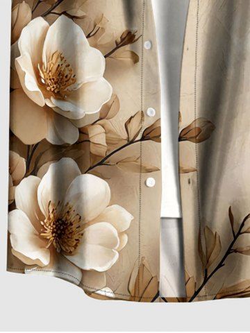 Chemise hawaïenne à imprimé floral, feuilles et branches, grande taille, avec poche boutonnée, pour hommes - Café Lumière - 5xl