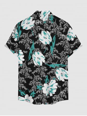 Chemise hawaïenne à imprimé floral, feuilles et branches, grande taille, avec poche boutonnée, pour hommes - Noir - Noir