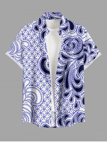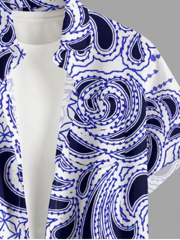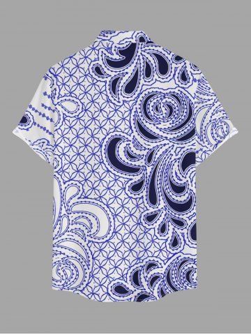 Chemise hawaïenne à imprimé floral grande taille et poches boutonnées pour hommes - Bleu - Bleu