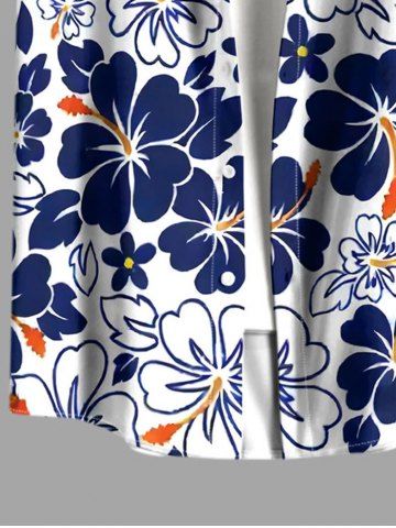 Chemise hawaïenne à imprimé floral hibiscus grande taille et poche boutonnée pour homme - Bleu Profond - L